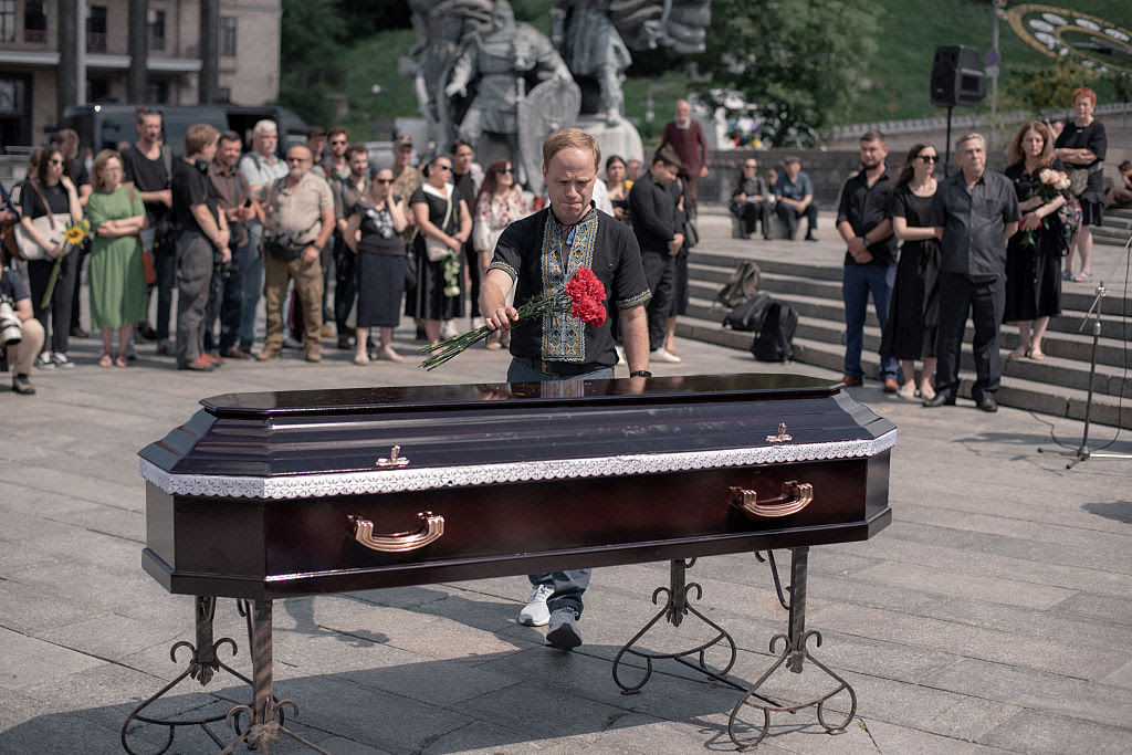 A funeral ceremony for Viktoriia Roshchyna in Kyiv, Ukraine. (Yana Prots/The Kyiv Independent)